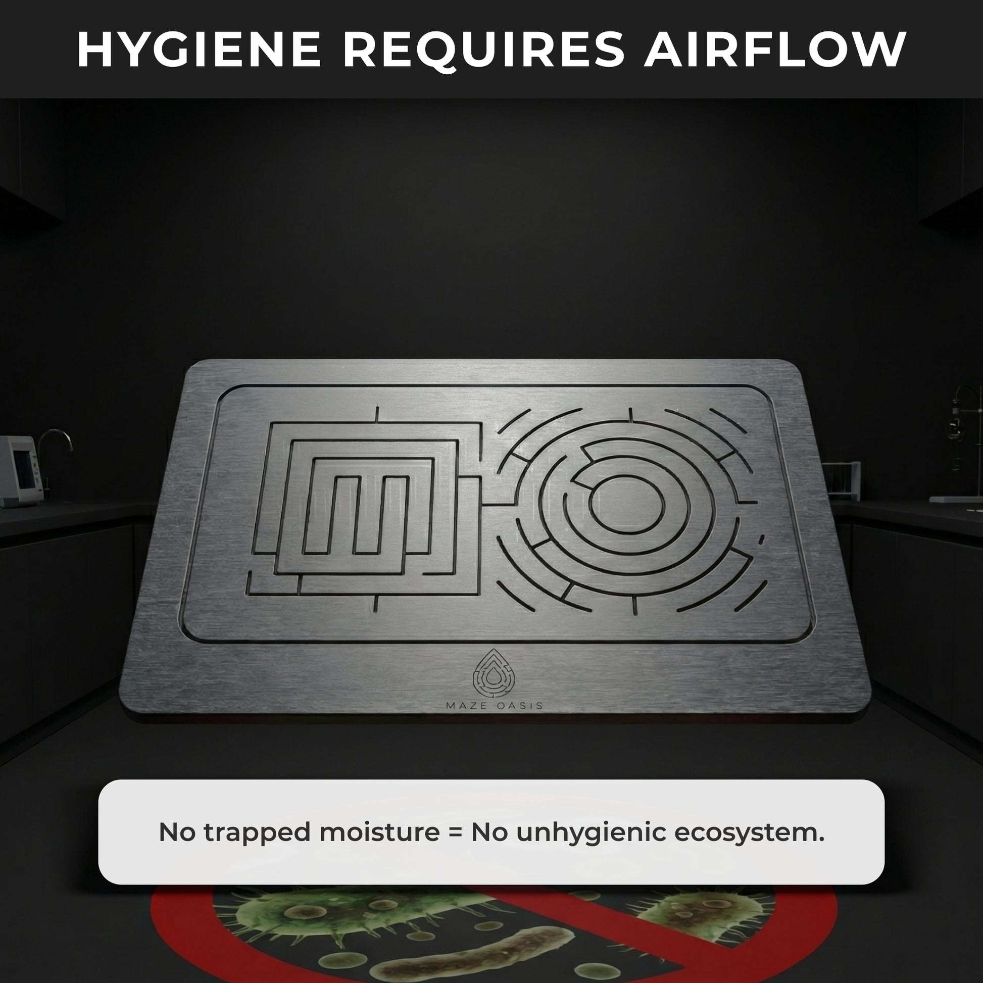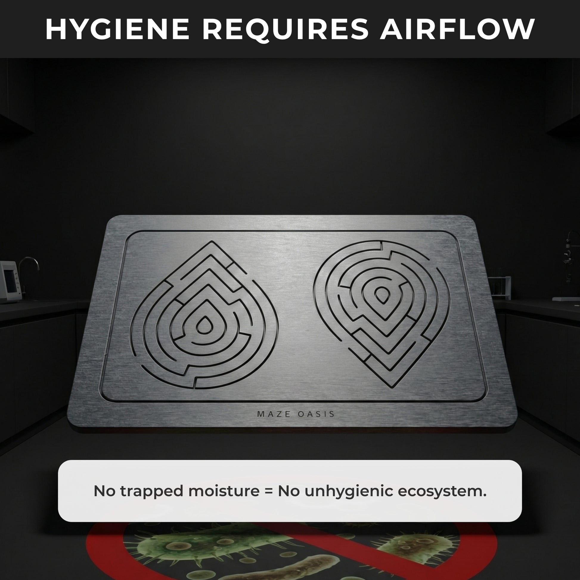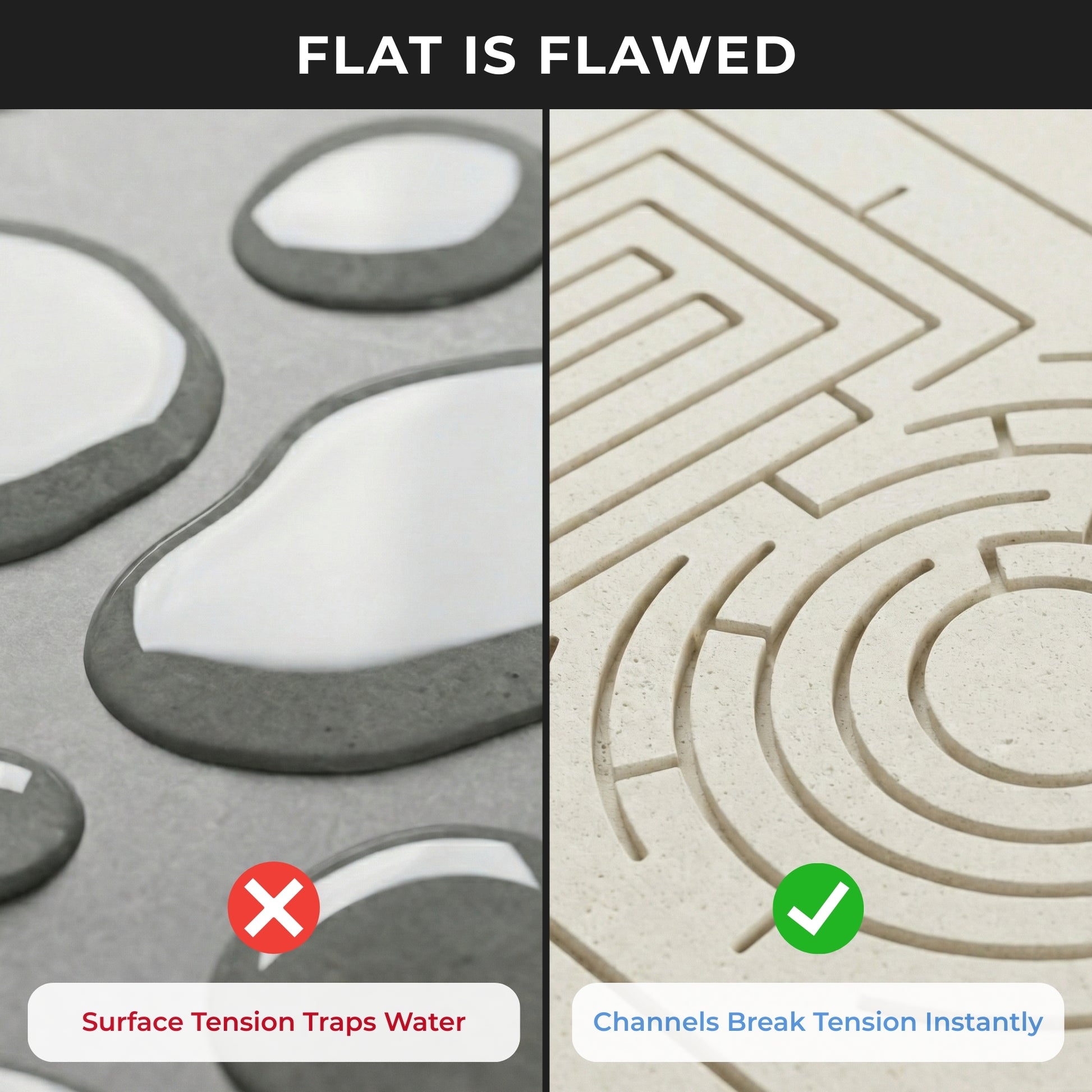 Our patented maze isn't just a pattern; it's physics. It creates a system of Capillary Action that actively pulls water away for hyper-evaporation. It’s the simple, scientific reason your floor stays perfectly dry.